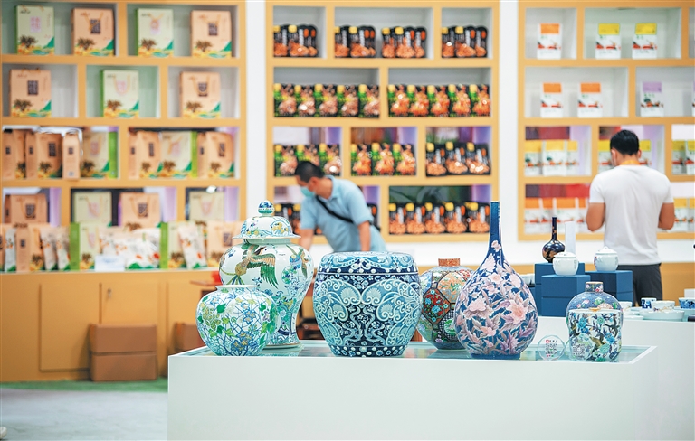 首届消博会江西展区展出的瓷器。 本报记者 袁琛 摄