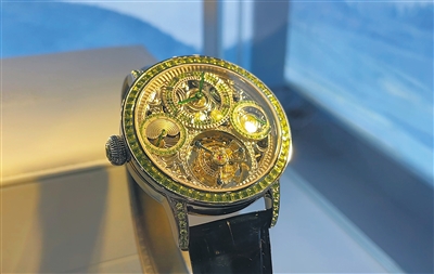 本报海口5月8日讯(海报集团全媒体中心记者周静泊)5月8日下午,两款“太阳的宝石”系列陀飞轮腕表“银河”与“星辰”在首届中国国际消费品博览会上全球首发。这两款腕表是由富丽宝石国际控股有限公司提供橄榄石,香港陀飞轮手表品牌万希泉镶嵌制作而成。青翠璀璨的橄榄石、精巧灵动的陀飞轮在表盘上相互映衬,既华丽又优雅。