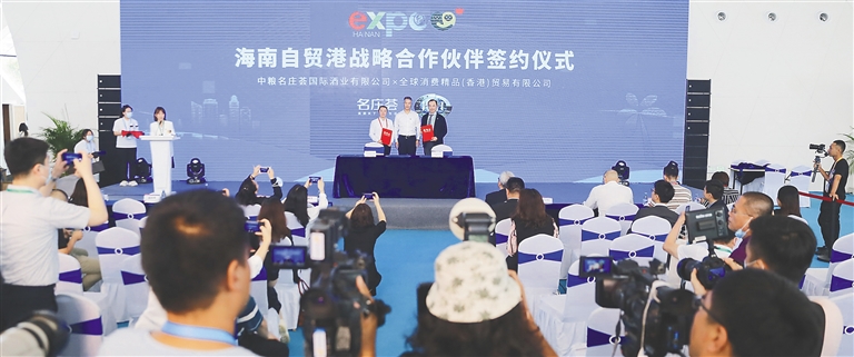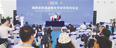 5月8日,在首届中国国际消费品博览会上,参展企业集中签约。本报记者 张茂 摄