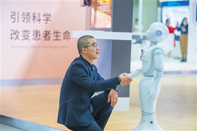 | 博鳌乐城国际创新药械展上,参展人员和机器人握手。 博鳌乐城国际医疗旅游先行区正推动国际先进医疗资源与国内健康需求有效衔接,在区内使用的未在国内上市创新药械已达130种。