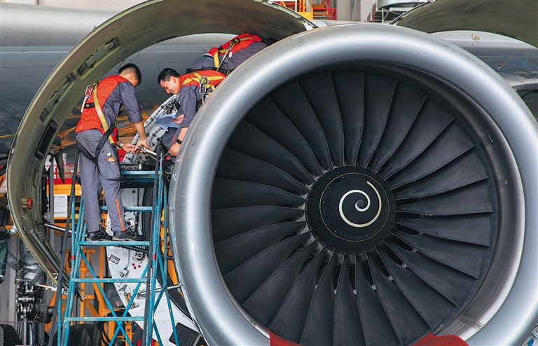 海南自贸港建设相关政策的陆续出台,飞机维修企业所需的进口设备及维修配件享受利好政策,将大幅度降低维修成本,为发展飞机维修业提供了有利的政策支持。本报记者 李天平 摄 |
