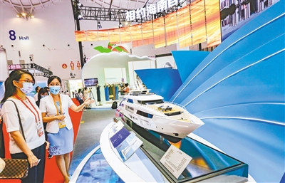 “哇!好大、好特别的游艇模型。”5月7日上午,在消博会的海南馆内,有不少参观者发出赞叹声。
