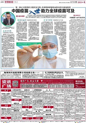 第一款正式获得世卫组织安全性、有效性和质量验证的非西方新冠疫苗~~~
