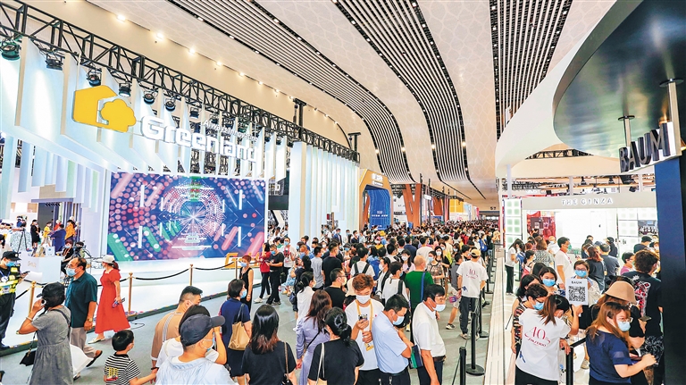 5月9日,首届中国国际消费品博览会开馆第三天,中外嘉宾进场观展热度不减,各个展馆人气爆棚。本报记者 陈元才 摄