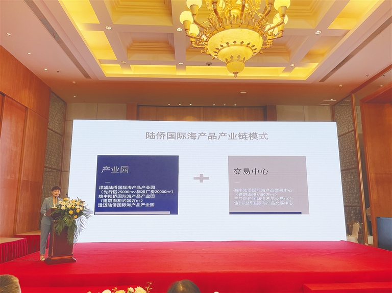 海南陆侨国际商贸有限公司副总经理刘素真女士在本次交流会上向全球推介了“洋浦陆侨国际海产品产业园”项目,现场来宾充分了解了在大宗商品进出口、加工增值免关税、免税集采、金融服务等方面与陆侨集团的合作机遇,这些机会将切实助推企业发展。据介绍,该项目一期位于洋浦保税港区内,加工经营场所占地面积25000平方米,标准厂房占地面积达20000平方米,总投资1.5亿元。其经营业态包含海产品产业展示大厅、免税海产品商超、全球免税集采中心、欢乐海岸免税国际餐饮、商务办公区、海产品加工厂房等。
