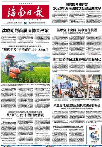 | 海南日报 头版 001 2021-05-101 2021年05月10日 星期一 |