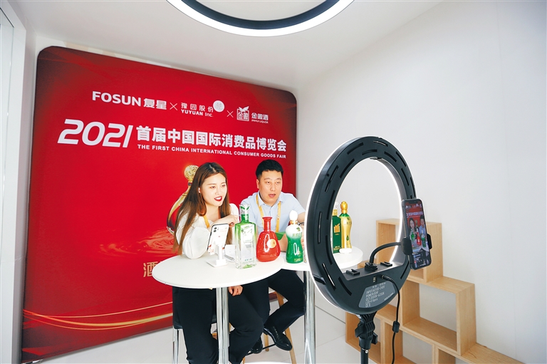 5月8日,主播在消博会上进行直播带货。 本报记者 袁琛 摄