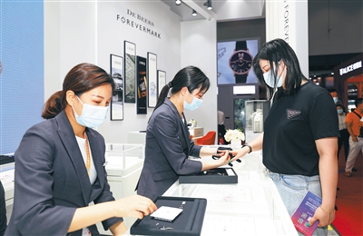 5月10日,在消博会现场,参展观众选购钻戒。 本报记者 李天平 摄