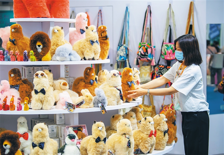 在此次消博会上,warmpaca展位不大,人气却很旺。进入会期最后一天,羊驼毛玩偶依旧在现场“吸粉”,参展者们询问购买的热情依旧居高不下。这让马丽霞感到高兴。