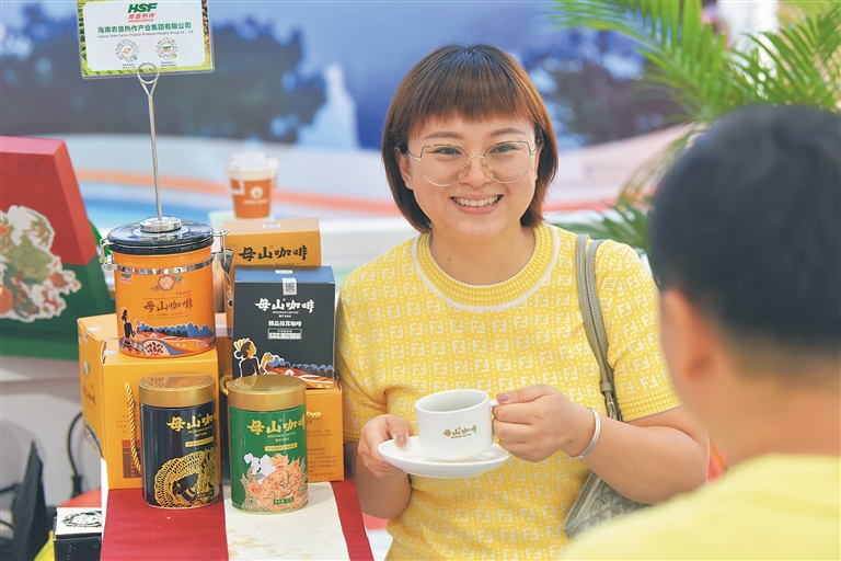 5月10日,消博会海南馆,观展观众品尝海垦母山咖啡。本报记者 袁琛 摄