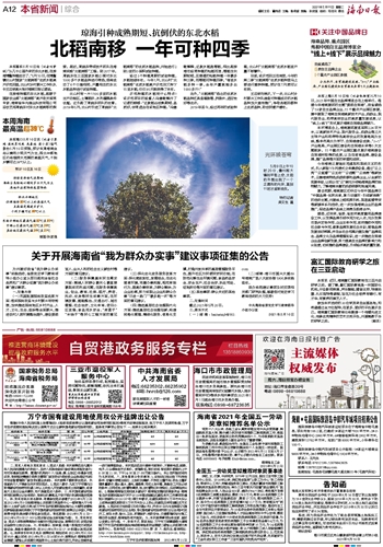琼海引种成熟期短、抗倒伏的东北水稻~~~