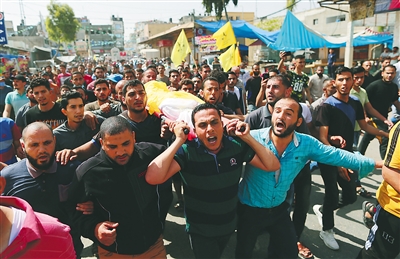 5月11日,在加沙地带拜特哈嫩,人们运送空袭遇难者的遗体。