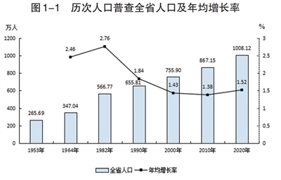 全省人口[2]与2010年第六次全国人口普查的8671485人相比,增加1409747人,增长16.26%,年平均增长率为1.52%。