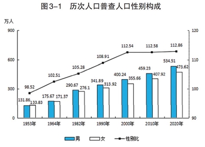 图3-1 历次人口普查人口性别构成