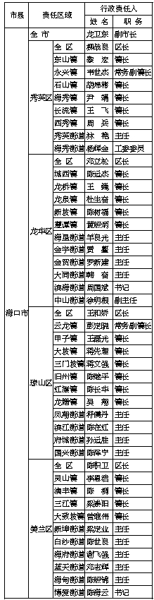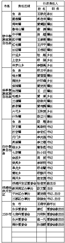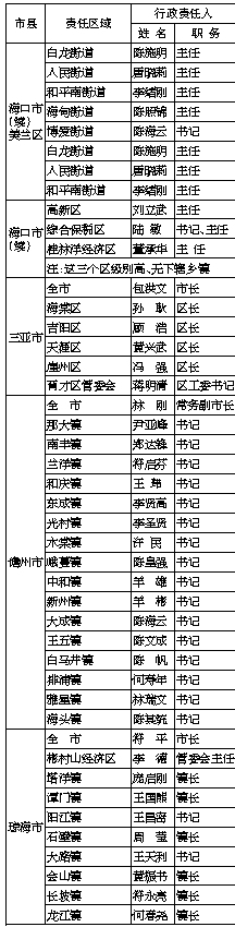 2021年海南省市、县(区)、乡镇(街道)防汛防风防旱行政责任人(截至5月12日)