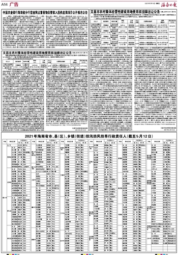 2021年海南省市、县(区)、乡镇(街道)防汛防风防旱行政责任人(截至5月12日)