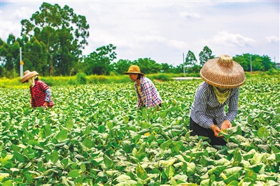 农业大企业规模化种植,有力促进了儋州农业结构调整。近两年,儋州引进海南金鹏农业开发有限公司推广种植毛豆,获得成功,2020年该市种植毛豆5000多亩,2021年种植面积迅速扩大至超过1万亩。“今年公司在东成、光村、王五等镇种植毛豆5000亩,与农民合作种植3000亩,签订保底价收购协议,降低农民的种植风险。”海南金鹏农业开发有限公司负责人王海良介绍。