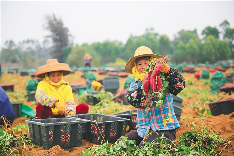 海头镇成立薯留香种植专业合作社,2018年注入产业扶贫资金280万元,与海南绿翠生态环境股份有限公司合作种植海头地瓜,累计带动262户1075名村民增收。海头镇岭地村脱贫户吴兴隆说:“我连续3年领到合作社的分红,这一份收入对我脱贫帮助很大。”