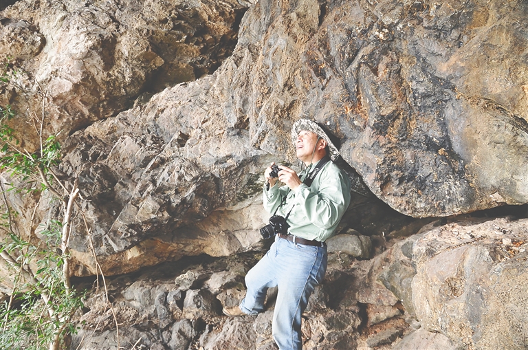 一台相机、一顶遮阳帽,背着考古工具,这是李超荣出门时的标配。哪座山头没有爬过就往哪里去,哪个洞穴没有钻过就往哪里钻。