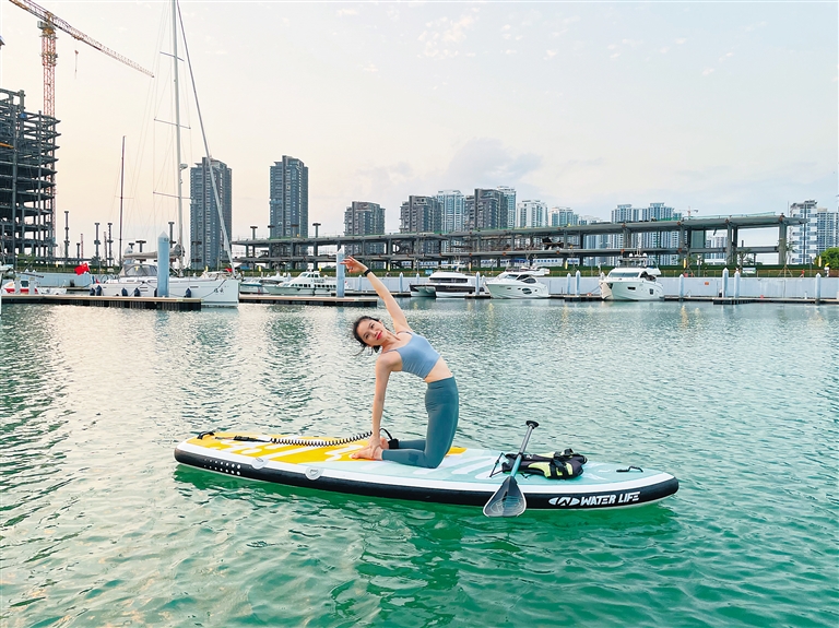 作为瑜伽运动的忠粉,她也十分期待桨板瑜伽同样能够在海南风行起来,“很多人对瑜伽的固有印象还停留在拉伸、冥想,其实瑜伽自身也在发展,现在已经越来越多样化、时尚化,它可以很动感、充满力量,也可以非常轻柔,更加契合不同人群的兴趣爱好。我很乐意通过不同方式传播瑜伽文化,相信桨板瑜伽会成为许多人重新认识瑜伽的一个窗口。”
