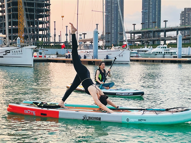 曾组织桨板瑜伽活动的艾墨瑜伽营销总监郑秋娴告诉记者,以后该公司还计划继续组织这样的活动,“之前都是在港池里做桨板瑜伽,以后我们还要去海面上做。毕竟海南拥有纯天然的海域,非常适合发展水上运动,而且随着海南自贸港的加快建设,许多不同文化涌入海南,也提高了大家对于桨板瑜伽的认知度和接受度。”