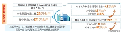 本报海口5月17日讯 (记者苏庆明 通讯员夏方禹娃 实习生范平昕)随着自贸港建设步伐不断加快,海南掀起市场主体投资兴业热潮。省市场监管局统计数据显示,《海南自由贸易港建设总体方案》发布以来,截至今年4月,全省新增市场主体35万余户,其中新增企业17.1万余户。