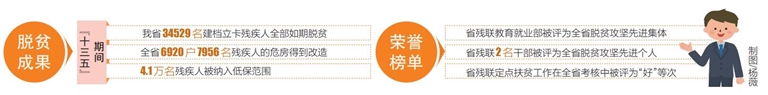 据统计,“十三五”期间,我省34529名建档立卡残疾人全部如期脱贫,全省6920户7956名残疾人的危房得到改造,4.1万名残疾人被纳入低保范围。省残联教育就业部被评为全省脱贫攻坚先进集体,省残联2名干部被评为全省脱贫攻坚先进个人,省残联定点扶贫工作在全省考核中被评为“好”等次,临高县和新村村委会被评为省脱贫攻坚先进集体,和新村乡村振兴工作队被评为海南省乡村振兴工作队先进集体。