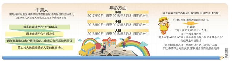 海口市教育局提醒家长,为保障符合条件适龄幼儿的入园权益,完善非海口户籍适龄幼儿持海口市居住证申请入园的工作机制,2022年起,非海口市户籍适龄幼儿申请公办幼儿园需监护人及申请入园幼儿持有海口市居住证。