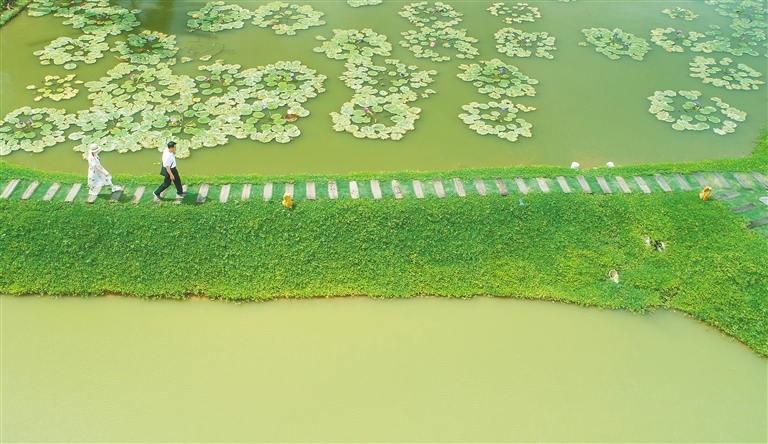 在建设九曲生态公园过程中,琼海市注重生态环境的保护,撤路还桥,在江面上重建了3座桥,即能方便村民生产生活,还让九曲江水重新流动起来,生态也得到了修复。