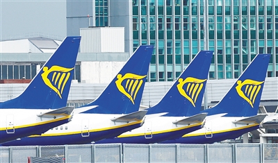 这是在爱尔兰都柏林拍摄的瑞安航空的客机(资料照片)。新华社/路透