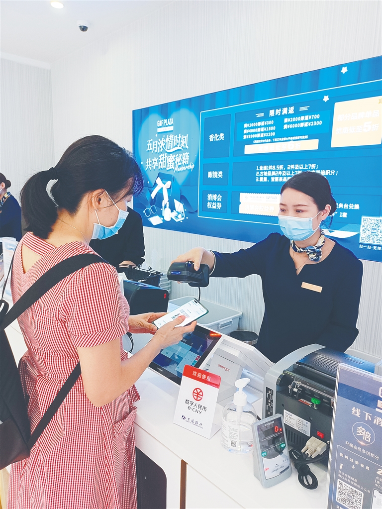 在免税购物方面,交行海南省分行助力海控全球精品免税城实现数字人民币全场景支付,成为海口地区首家支持数字人民币全场景支付的免税企业。最近,在免税店,很多消费者给数字人民币点赞。“实时到账,‘碰一碰也可交易’,提现没有手续费,数字人民币优点不少。”一位消费者说。