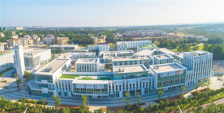 海口江东新区1.5级企业港项目(一期)目前陆续投入使用,有21家知名建筑设计类企业集中签署意向进驻。 本报记者 袁琛 摄