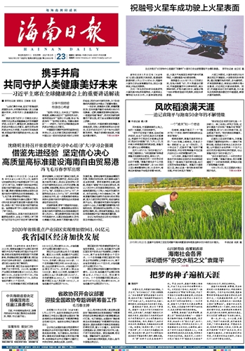 当下,海南正在积极推进“南繁硅谷”建设,为开展种源“卡脖子”技术攻关、打赢种业翻身仗作出海南贡献。袁老曾经说:“海南是我的福地,几十年来,我的许多重要科研都是在海南完成的。”愿海南这片热土续写袁隆平的种子精神、种业奇迹。
