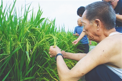 “知识、汗水、灵感、机遇”是袁隆平的“八字成功哲学”,下田像吃饭一样频繁,这是他的老习惯了。