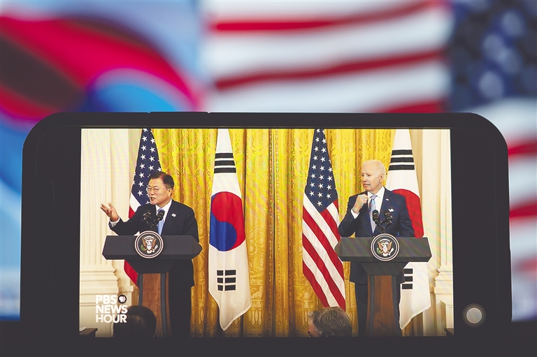 由于全球半导体短缺、芯片产能持续紧张,美国汽车企业以及生产电子产品的科技企业受到重创。韩国三星、SK海力士是重要的半导体生产商,拜登政府希望借助韩国之力强化半导体供应链。双方在联合声明中表示,要在半导体、电动汽车电池、战略性和关键性材料以及制药等领域加强合作,提升供应链韧性。