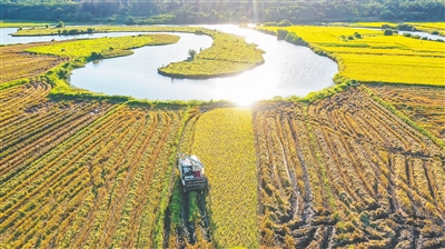 日前,海口琼山区三十六曲溪两岸田洋迎来夏收,一片丰收景象。 黄一笑 摄