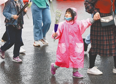 人潮中,有许多手持鲜花、从四面八方赶来的莘莘学子。他们面庞青涩,神情肃穆,安静有序地跟着队伍一步步前移,然后,深深鞠躬。
