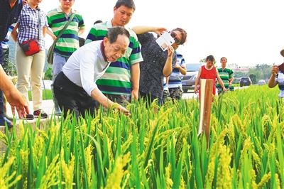 “4月20日,团队曾对试验区进行数据调查,听到汇报后,他高兴地说‘很好、肯定能突破’。后来获悉测产数据后,袁老师鼓励我们再接再厉,在第三系杂交水稻、耐盐碱水稻的项目攻关、技术突破、推广示范方面取得更大成绩。”李新奇说。