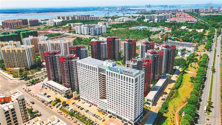 近日,俯瞰洋浦经济开发区东部生活区,高楼林立。随着住宅区和写字楼逐渐建成,园区的软件硬件配套进一步完善。本报记者 陈元才 摄
