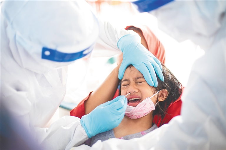 5月23日,医务人员在马来西亚雪兰莪州的梳邦再也为当地民众进行新冠病毒检测。