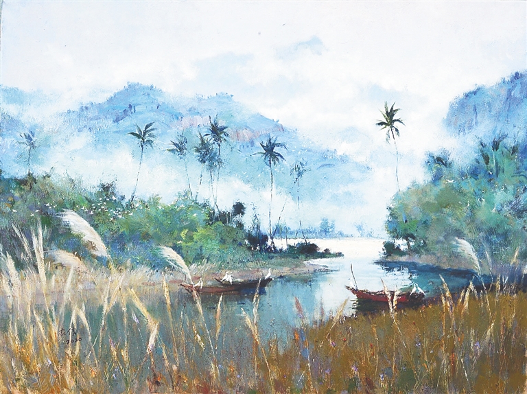 一一细看此次的展品,白昼与月夜、密林与海港、椰林和木棉,海南的许多显著特点都被王家儒画进了画里。“海南质朴、空灵、毓秀,它的美是多维的。”他说,“而海南画家注重回归人性及与自然的神交。这种对自然情有独钟的依恋使他们的作品具有田园气息和人文关怀的唯美取向。”