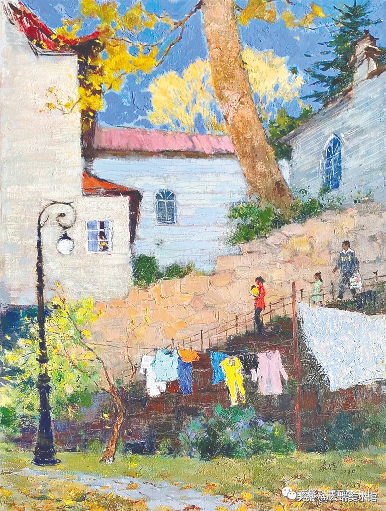 王家儒之前曾办过很多次水彩画展,这次是单独的油画展。在此次所有展出作品中,王家儒本人尤其钟爱其中四幅:《坐看云起时》《海口钟楼》《月光曲》和《空山不见人》。