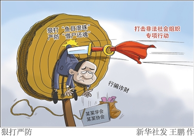 今年3月20日,民政部、中宣部、中央政法委等18个部门联合在全国开展为期三个半月的进一步打击整治非法社会组织专项行动,重点对“利用国家战略名义,在经济、文化、慈善等领域活动的”等五类非法社会组织进行打击整治。