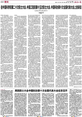 在中国科学院第二十次院士大会、中国工程院第十五次院士大会、中国科协第十次全国代表大会上的讲话