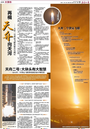 ~~~——天舟二号货运飞船发射升空侧记