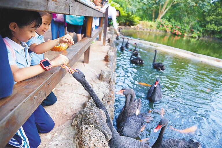 据了解,除现场听取工作人员对动物种类的讲解外,学生们还通过喂食体验以及书本趣味答题等形式进行研学体验。