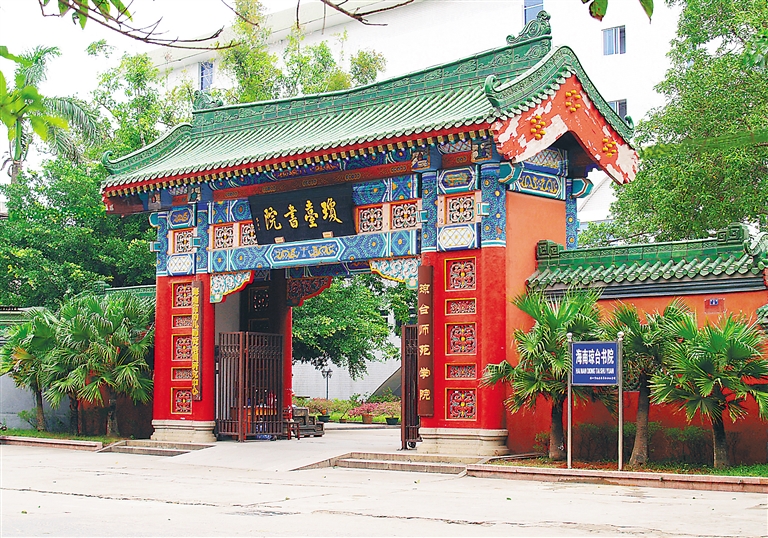 走进古朴雅致的大门,入目便是郁郁葱葱的鸡蛋花树,树后有两排古香古色的阁楼,这便是清代琼崖最高学府琼台书院,亦是今天的琼台师范学院。