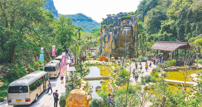 地处大山腹地的昌江黎族自治县王下乡,曾是出了名的偏远贫穷之地。但如今,这里的山水之美和民俗文化成了当地“点绿成金”的最大资本。图为4月15日,王下乡举行黎花里旅游体验活动,吸引了众多游客到此体验民族生态游。本报记者 陈元才 摄