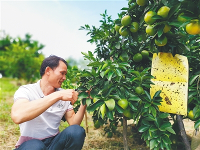 靠种植绿橙,琼中黎族苗族自治县罗坎村村民王朝参顺利脱贫。本报记者 李梦瑶摄
