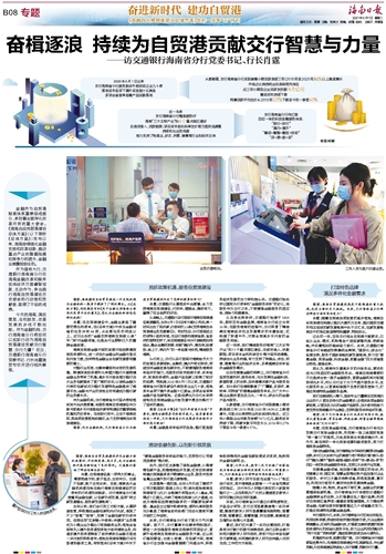 笔者:作为金融机构,交行海南省分行为推进自贸港建设作出了怎样的探索和努力?